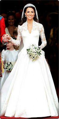 The trendsetting gown that she wore on her walk down the aisle was designed by Sarah Burton for Alexander McQueen and made from French Chantilly lace, English Cluny lace and ivory and white satin gazar.